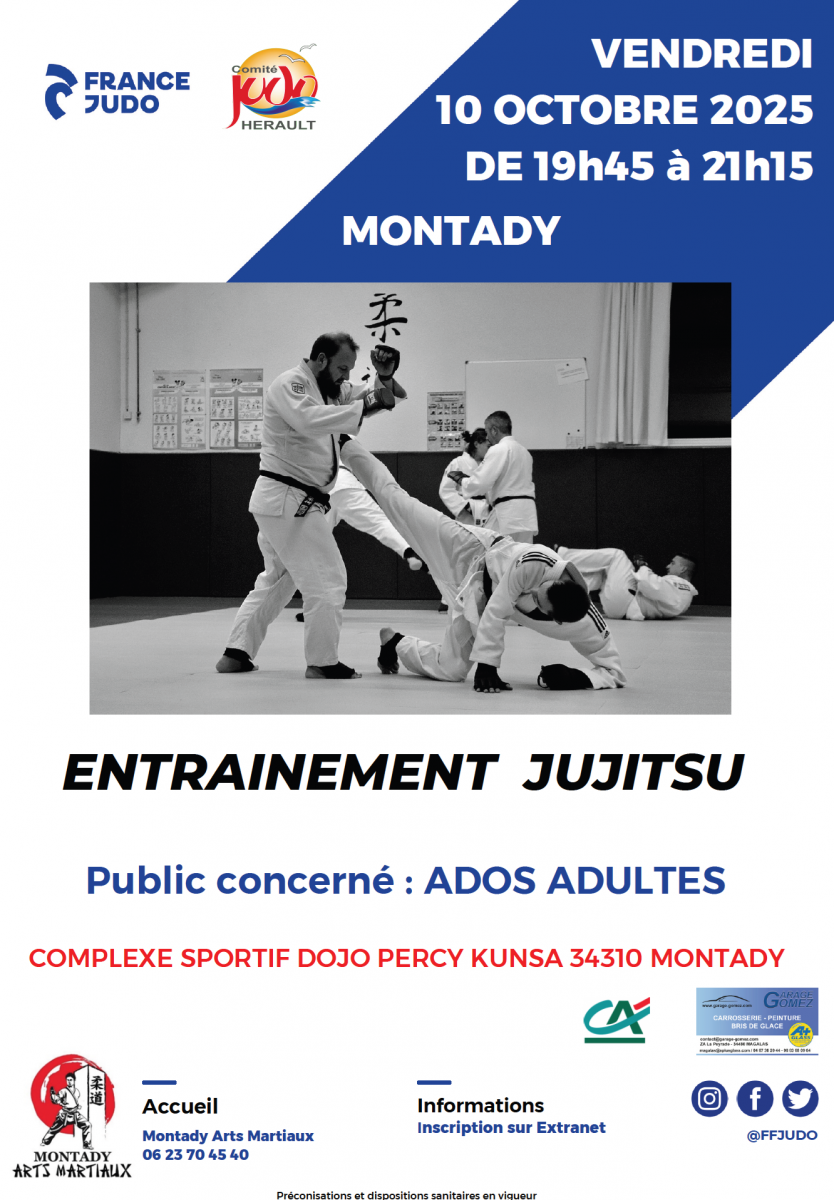 Entraînement Jujitsu – Vendredi 10 octobre à Montady de 19h45 à 21h15